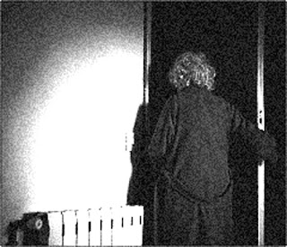 está en el umbral de la puerta. Plena noche, todo en silencio. La única luz la